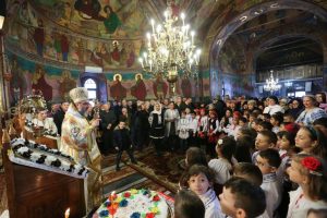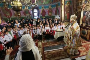 Elevii au participat la slujba arhierească, au cântat colinde și au recitat poezii, și au fost răsplătiți cu daruri.