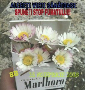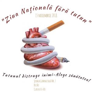 Activitățile au fost desfășurate în a treia joi din luna noiembrie- 15 noiembrie- cu ocazia ,,Zilei Naționale fără Tutun”, slogan ,,Tutunul distruge inimi- Alege sănătatea! ”din cadrul proiectului cu tema „Fii conștient, nu dependent!”- ediția a II-a în parteneriat cu Centrul de Prevenire Evaluare și Consiliere Antidrog Buzău.