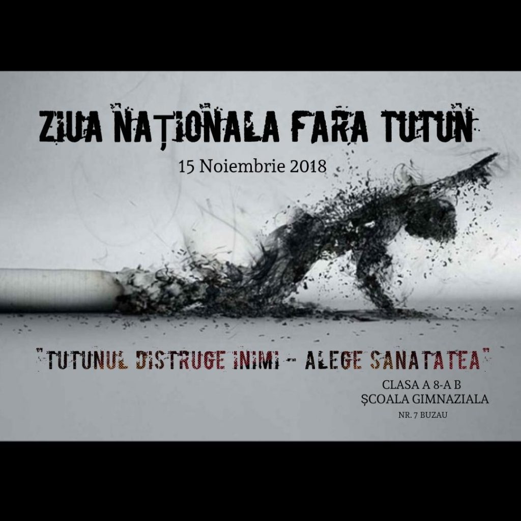 Activitățile au fost desfășurate în a treia joi din luna noiembrie- 15 noiembrie- cu ocazia ,,Zilei Naționale fără Tutun”, slogan ,,Tutunul distruge inimi- Alege sănătatea! ”din cadrul proiectului cu tema „Fii conștient, nu dependent!”- ediția a II-a în parteneriat cu Centrul de Prevenire Evaluare și Consiliere Antidrog Buzău.